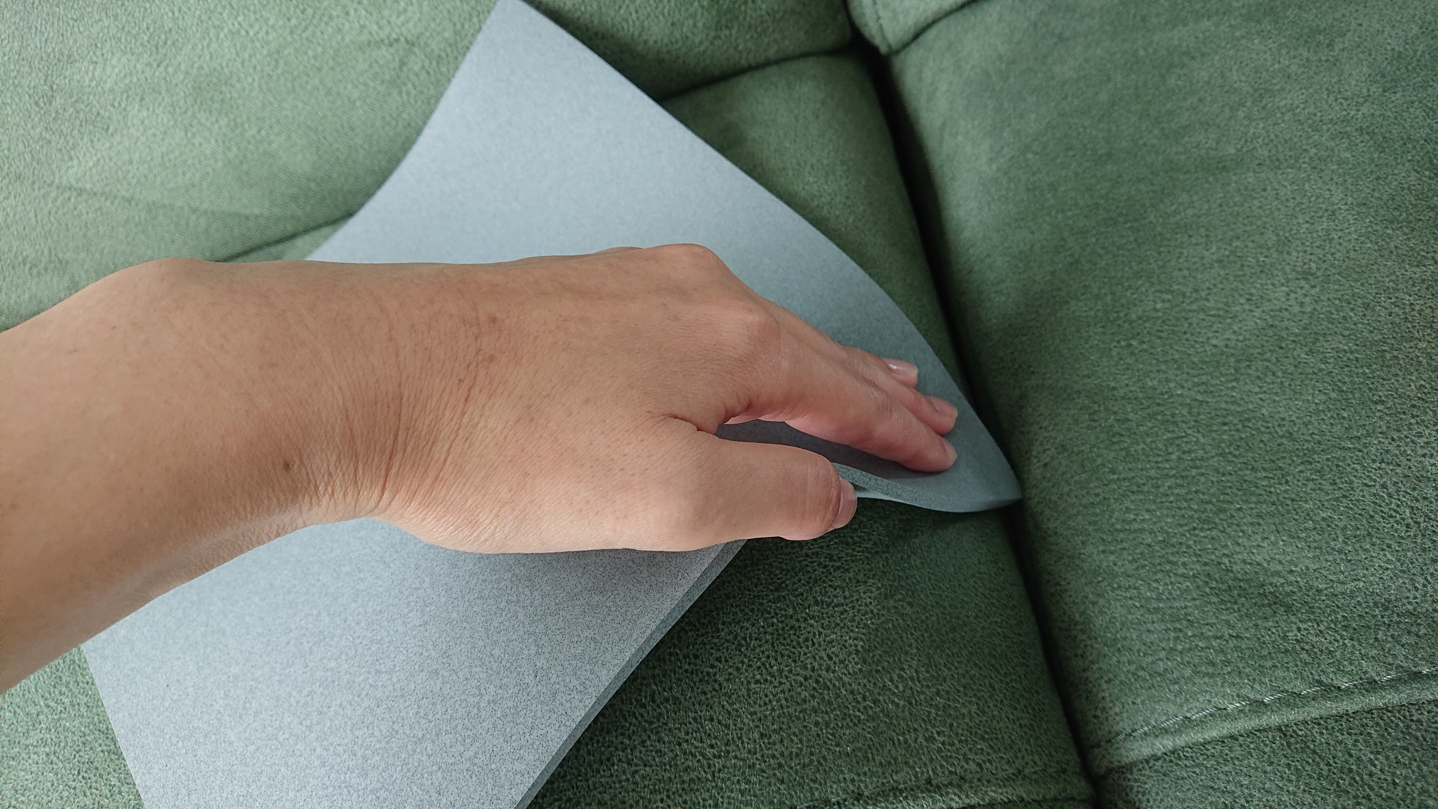 室内クリーニング時、掃除機では吸い取りきれないゴミや動物の毛などを掻き出し集めることができるスポンジです。